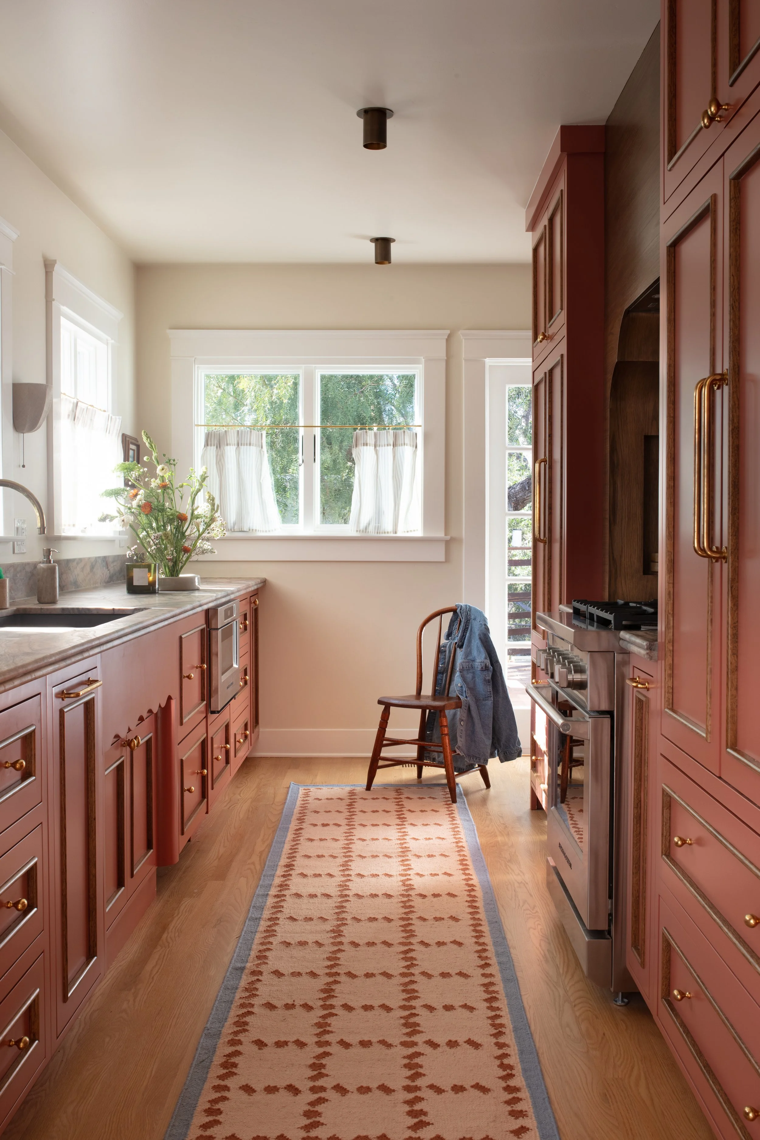 This sweet little canyon bungalow holds a special place in our heart. She’s small but packs a punch. We wanted to pay homage to her 1920’s Spanish Craftsman style by incorporating detailing from the original cabinets - like you see under the kitchen sink. We photographed and replicated the scalloping and cove from the 1920’s kitchen that was previously here. We also referenced the original color palette by bringing in pink undertones and earthy hues. This house is beaming with pride from it’s origin story.